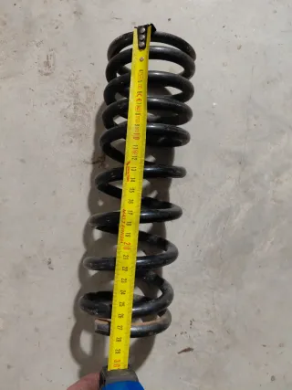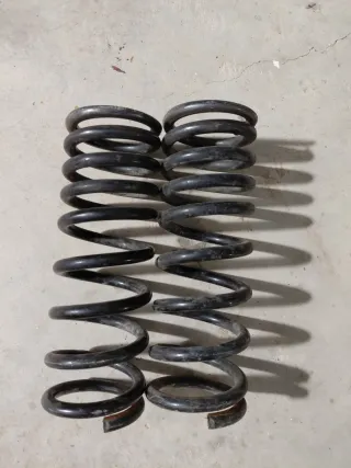 Muelles originales de suspensión para BMW E30 325i post. Mangueta delantera de 51 mm. Se venden en conjunto. - Muelles delanteros y traseros. - Longitud muelles delanteros: 35 cm. - Longitud muelles traseros: 24 cm. - Fabricados en metal negro. - Buen estado, sin defecto.