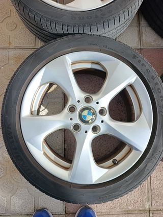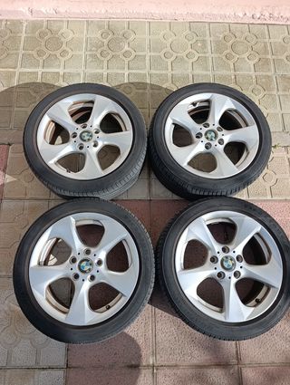 Vendo juego de 4 llantas originales de BMW en 17', muy difiles de ver en perfecto estado y con neumáticos firestone al 40%, estaban puestas en un e46, precio poco negociable, NO HAGO ENVÍO. - Diseño deportivo de 5 radios. - Acabado plateado. - Centro con logo BMW.