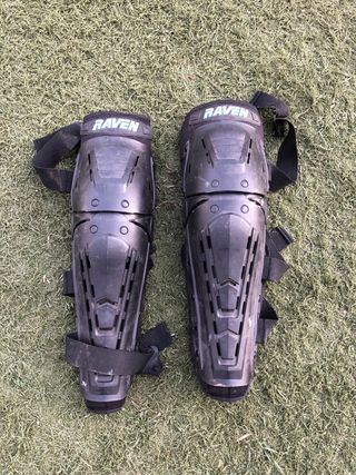 Protecciones para moto marca Raven. - Rodilleras de plástico duro. - Cierre con correas ajustables. - Diseño ventilado.