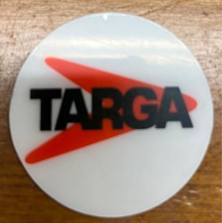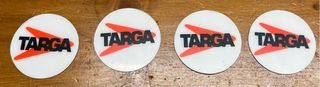 Set de cuatro tapones de buje con el logo TARGA. - Adhesivos de 50mm de diámetro. - Diseño circular blanco. - Logo TARGA en negro y naranja.