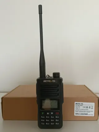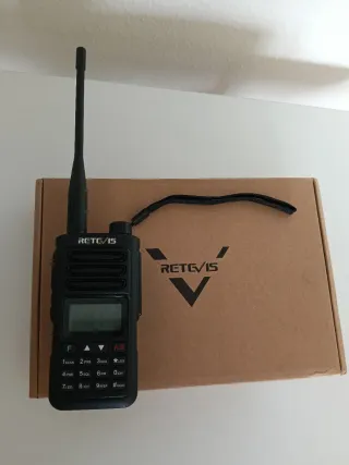 Emisora de radio VHF UHF Retevis modelo R89, ideal para caza o comunicaciones generales. Se entrega programada con los 10 canales de caza zona norte, Cantabria, Asturias, Castilla y León. Se regala pinganillo. Nueva en su caja con accesorios e instrucciones. Impermeable con IP68 y tri-power de 1, 5 y 8 watios. - Color negro. - Incluye antena. -Clip para cinturón. - Pantalla LCD. - Teclado numérico y teclas de función -Bi banda.