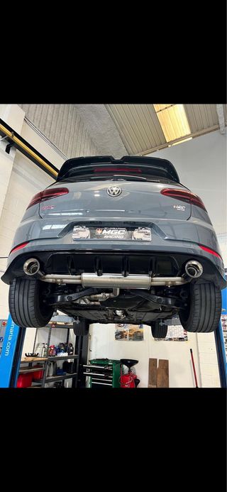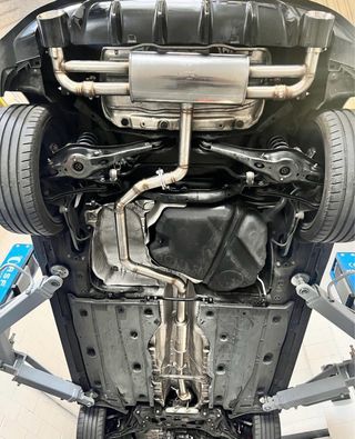Sistema de escape completo, incluye tramo intermedio y trasero con válvulas. - Fabricado en acero inoxidable. - Diseño deportivo y de alto rendimiento. Con su homologación y sus papeles, es complatible con bastantes modelos grupo vag, actualmente esta en un golf gti TCR.