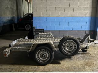 Remolque basculante para transporte de coches. Con documentación - Plataforma de carga. - Rueda de repuesto incluida. - Rampas de acceso.
