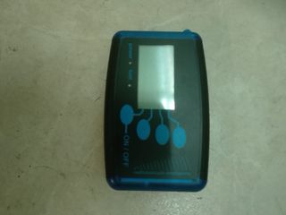 Báscula digital con pantalla y botones de control. - Diseño en color negro y azul. - Indicadores de 'power' y 'batt'. - Botón 'ON/OFF'. - Conexiones para sensores.