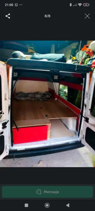Camperizado completo, medidas 250-150-150, techo abatible, doble puerta trasera, puerta lateral, instalación eléctrica, almacenamiento interior, cocina. Luz