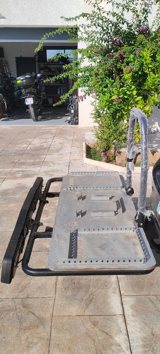 Plataforma de soporte para enganche de bola de remolque. - Fabricada en metal. - Incluye luces traseras.