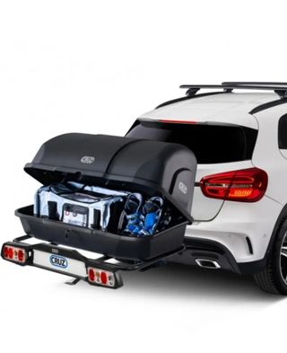 Cajón de transporte para coche, ideal para llevar equipaje adicional. - Color negro. - Diseño robusto y duradero. - Incluye sistema de luces y señalización. - Carga máxima: 75 kg.