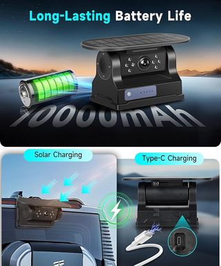 Cámara trasera para coche , camión, remolque, caravana con panel solar integrado y conexión inalámbrica. - Alimentación solar. - Conexión inalámbrica. - Diseño compacto y moderno.