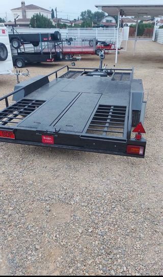 Remolque porta coches en perfecto estado, listo para su uso. - Estructura metálica galvanizada. - Rampa de carga. - Cabrestante manual. - Rueda jockey. - Luces de señalización.