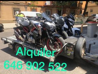 Se alquila remolque plataforma,para 3 motos, quad, buggy, mercancia, bicis, en perfecto estado,con cajón amplio para guardar lo que se necesite,tiene freno de inercia cualquier coche por pequeño que sea lo puede remolcar legalmente, rueda jockey,rueda de repuesto,2 rampas para subir quads y de 2 metros para que las motos de carretera suban sin tocar la quilla, doy cinchas para atar la carga y antirobo,entran 3 motos de carretera 3 de enduro trial cross trail scooter pit bike bici mtb btt coche pequeño Renault twizy. El precio es de 30€ el primer día y 20 los siguientes , se recoge y entrega en yeles(Illescas, Sagra, Yuncos, Numancia, seseña)