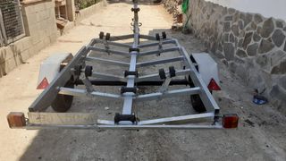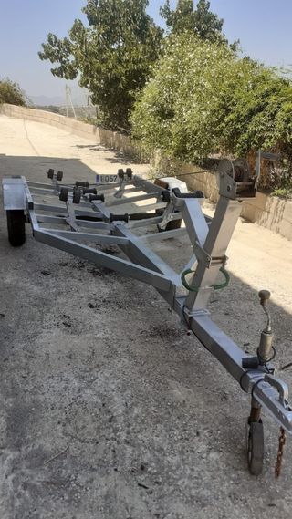 Remolque para transportar una moto de agua o barco pequeño. Se encuentra en buen estado. - Remolque robusto y resistente. - Sistema de polea para facilitar la carga. - Rueda de apoyo para facilitar el movimiento. - Incluye enganche para coche.
