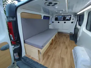 Se vende furgoneta camper ,por cambio de proyecto es una Renault traffic versión caja larga con motor rectificado (84000 km actuales) embrague nuevo con menos de 3000 km era una ambulancia transferida a furgoneta con lo cual viene panelada y aislada interiormente, dispone de placa solar(200w) homologada en papeles con controlador solar , bola de remolque y baca robusta que ocupa el techo entero , dispone de llaves de corte para calefacción trasera con motor de 2 velocidades de aire , sirve tanto para frío como calor , suelo vinilado efecto parqué , cama hecha a media para campers de 1,40 x 1,90 aprox que se hace sofá como en las fotos quedando sitio para meter o hacer algún otro mueble se puede ver y probar sin compromiso precio algo negociable , no me corre ninguna prisa el verderla así q abstenerse mareantes acepto cambio por algo de mi interés coche para coche clasico escucho ofertas NO ME CORRE PRISA NINGUNA ABSTENERSE OFERTAS RIDICULAS Y MAREANTES