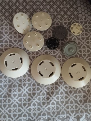 Foto 1, Salpicadero con volante, 1,90€ Foto 1, Salpicadero sin volante, 0,95€ la unidad Foto 2, Tapacubos grandes 0,60 cts la unidad. Foto 3, Tapacubos pequeños 0,75 cts la unidad. Foto 4, parabrisas 1,90€, la unidad. Foto 5, eje ruedas; 0,50cts la unidad. Foto 6, diferentes piezas a 0,85 cts la unidad. Foto 7, enganche remolque negro 0,45cts, el gris a 0,90cts. Foto 8, ref.3148 portón Camper 4,25€. Foto 9, ref.3817, techo trailer, está arañado y le falta una bocina gris, 2,45€. Foto 10, alerón de la ref.4366, 1,65€
