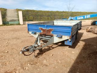Remolque para el transporte de maquinaria . Todos los laterales son desmontables. Enganche para camión y coche. Montado sobre ballestas. Freno de inercia