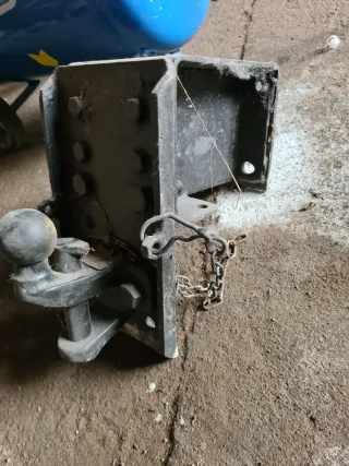 Bola de remolque para mercedes vito 638 original. - Incluye soporte metálico. - Bola de enganche. - Etiqueta de homologación visible. Tornillería. Precio negociable.