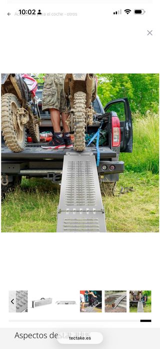 Rampa de carga metálica, ideal para cargar motos en remolques o furgonetas. - Fabricada en aluminio resistente. - Diseño perforado para un mejor agarre. - Plegable para facilitar su almacenamiento y transporte. com marcas de monataje