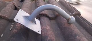 Soporte de pared metálico curvado con acabado en gris. Ideal para fijar objetos a la pared. O para quad gancho remolque - Fabricado en metal resistente. - Color gris. - Diseño curvado. - Incluye una pieza esférica en el extremo.