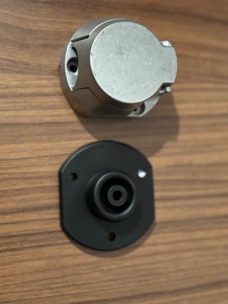 Base de piña para conexión de remolque de 7 pines - Material metálico plateado. - Base negra con conector.