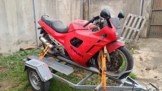 Se vende motocicleta Suzuki GSX 600F de color rojo. El remolque no está incluido en la venta. La moto esta de baja definitiva funciona solo habria que limpiar carburadores se vende para repuestos - Modelo: GSX 600F - Color: Rojo