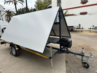 Remolque ligero de carga para autocaravana Medidas 250x190x190 Eje d 1000kg con freno Ruedas 185 70 R14 Rueda jokey semiautomática Patas de caravanas traseras Rampa en sueño de aluminio con muelles de ayuda Suelo de remolque en tablero finlandes Techo elevable Puerta delantera derecha Cierres falleba en puertas PRECIO POR PRIVADO O TELÉFONO SEVILLA REMOLQUES FABRICAMOS A MEDIDA TLF.611 51 74 00/616 60 13 40