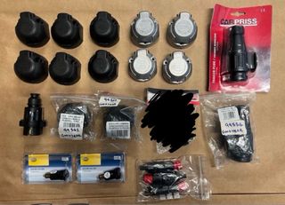 Se vende lote de recambios para remolque. Incluye varios conectores, pilotos y otros accesorios. - Conectores de 7 y 13 pines - Bases de 7 y 13 pines - Pilotos traseros y laterales. - Reflectantes. - Pilotos gálibo - Pilotos led - Conectores de mechero ( Opción de vender piezas sueltas)