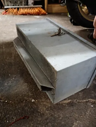Cajones metálicos para remolque de coche. Ideales para organizar y guardar herramientas o equipamiento. - Construcción robusta de metal galvanizado - Diseño rectangular con tapa. - el de color gris Incluye llaves para el cierre con medidas 20x21x46 tiene un tubo de 4cm en la base -El negro no tengo llaves y las medidas son 35x35x50 menos la esquina a 45° - precio de 30€ cada uno