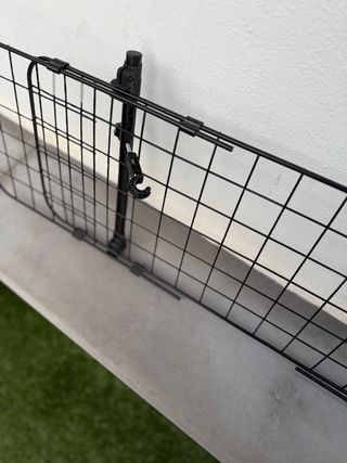Separador metálico para perro/ carga El ancho de la rejilla es ajustable de 106 a 145 cm; es bastante universal el producto para coches que utilicen barras en los reposacabezas traseros, pero por favor tome medidas para asegurar que el separador le será adecuado Instalación práctica a las barras de los reposacabezas, queda bien sujeta y no se pierde tanto espacio ni se daña el techo del coche como con los separador que se sujetan con barras verticales del suelo al techo