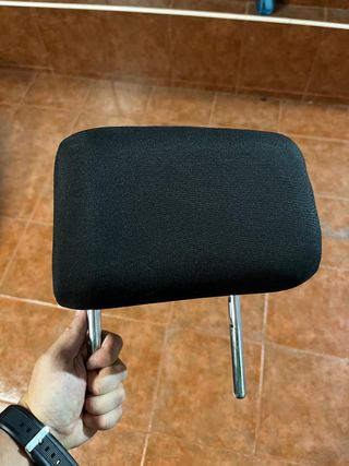 Reposacabezas de coche en color negro. - Tapicería de tela. - Barras metálicas cromadas. No recuerdo de qué coche era, creo que Opel Vectra o Hyundai Matrix