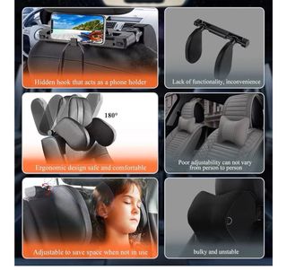 Este reposacabezas está diseñado para brindar comodidad durante los viajes en coche. - Material: Cuero sintético. - Color: Negro. - Diseño ergonómico.