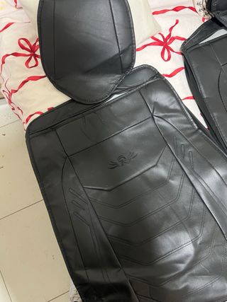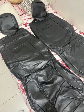 Juego de fundas para asientos de coche en color negro. - Material: Polipiel. - Diseño acolchado. - Incluye fundas para asientos delanteros y reposacabezas.
