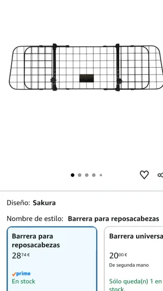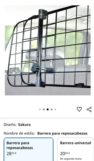 Barrera de seguridad para coche, modelo Sakura. - Diseño de rejilla metálica. - Ajustable a reposacabezas. Es ideal para separar carga del maletero del habitáculo o para llevar mascotas en el maletero. Sólo usado en un viaje