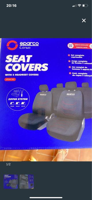 Set completo de fundas Sparco Corsa para asientos de coche. - Incluye 5 fundas para reposacabezas. - Diseño con sistema de cremallera (Zipper System). - Modelo: SP5441RD. Color negras sin detalles en rojo