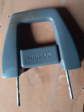 Reposacabezas para Nissan Patrol. Pieza de color gris con el logo de Nissan. - Logo de Nissan grabado. - Dos varillas metálicas para sujeción.