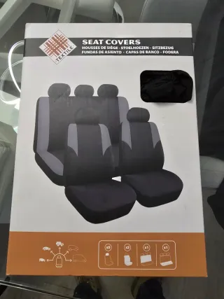 Set de fundas para asientos de coche, ideales para proteger el interior de tu vehículo. El paquete incluye fundas para asientos delanteros y traseros. - Material textil. - Diseño moderno en gris y negro. - Incluye 5 fundas de asiento (x5). - Incluye 2 fundas de reposacabezas (x2). - Incluye 1 funda de banco (x1).