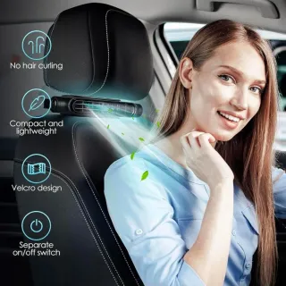 2 Ventiladores Ventilador portátil diseñado para acoplarse al reposacabezas de un coche. Ideal para mantener el ambiente fresco. - Color negro. - Diseño compacto y discreto. - Incluye cable de alimentación.