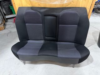 Conjunto de asientos traseros para Volkswagen T5.1 completamente nuevos, estan guardados desde la compra de la furgoneta en almacen sin humedad ni malos olores. Por peso y volumen sólo entrega en mano en Granada. - Tapicería de tela gris de dos tonos. - Reposacabezas integrados. - Cinturones de seguridad.