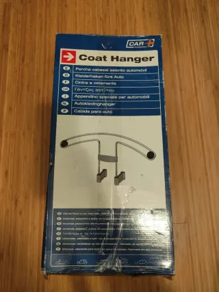Percha para colgar ropa en el asiento del coche. Es universal y adaptable a la mayoría de los reposacabezas. - Material: Acero cromado. - Diseño adaptable a reposacabezas.