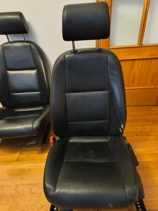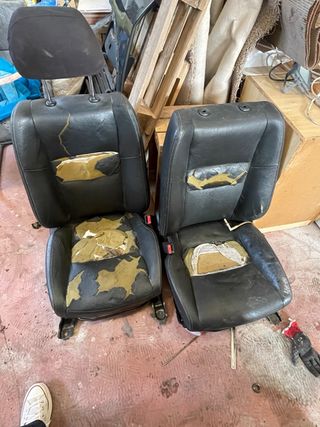 Se venden asientos delanteros de cuero para Honda Civic. Presentan desgaste visible en la tapicería. Calefactables - Tapicería de cuero negra. - Incluye reposacabezas. - Desgaste en la zona del asiento y respaldo.