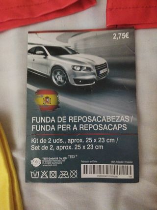 LOTE BANDERA ESPAÑA 4 REPOSACABEZAS + 2 CUBRE Retrovisores + IMAN CAPOT COCHE