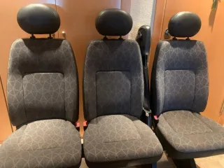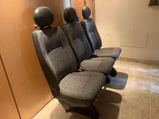 Asientos segunda fila triple para Mercedes Vito W447. Están en buen estado, como se ve en las fotos - Bancada de dos asientos mas uno - Tapicería de tela gris a cuadros. - Incluyen reposacabezas. - Mecanismo de plegado.