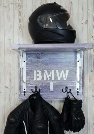 Percha pensada y decorada para moter@s. Con soporte para casco de 40cm x 30cm. Madera de 2,8cm de grosor y repleta de ganchos para chaqueta, guantes, llaves, etc. Se realizan decoraciones variadas, ponte en contacto y pide tu percha artesana, solicitando tu decoración.