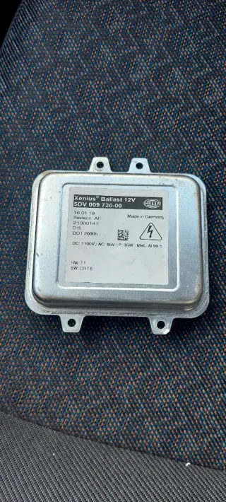 Centralita de xenón Hella, modelo 5DV 009 720-00, fabricada en Alemania. - Voltaje: 12V. - Código de producto: 21300141. - Fabricante: Hella. - Fabricado en Alemania.