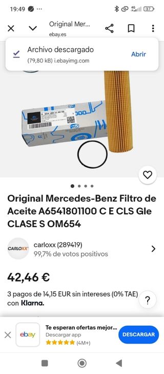 Filtro de aceite original Mercedes-Benz. - Referencia: A6541801100. - Compatible con modelos Clase C, E, CLS, Gle y OM654.