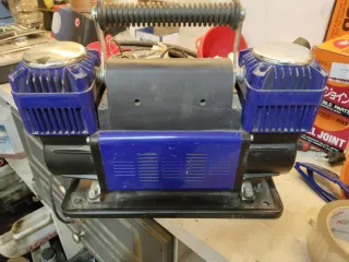 Compresor de aire portátil de 12V, ideal para inflar neumáticos. - Diseño robusto con doble pistón. - Asa para fácil transporte. - Carcasa azul y negra. - Ideal para llevar en el coche, sobretodo para el mundo offroad y 4x4 - Se puede instalar en cualquier vehículo y utilizar tanto para activar los bloqueos por aire, como para subir y bajar presiones de los neumáticos Arb, bloqueo, diferencial, compresor, aire, hinchar, autoled, offroad, 4x4, 12v