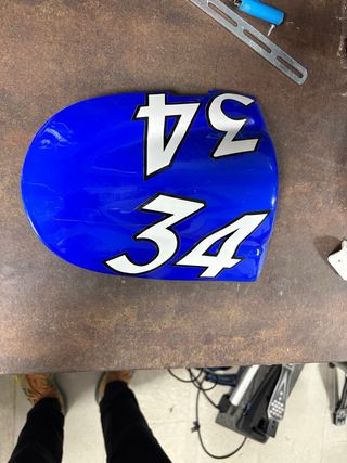 Tapa de colín para Suzuki GSXR k6/k7. Color azul con números blancos. - Diseño deportivo. - Compatible con modelos GSXR 06-07.