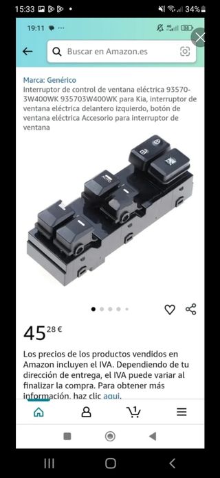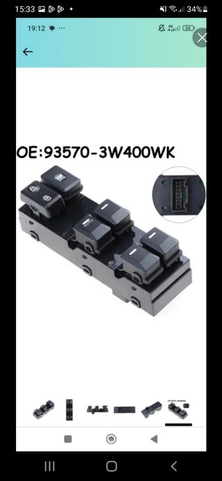 Mando de elevalunas para Kia con número de referencia OEM: 93570-3W400WK. Pieza de recambio para coche. - Conector de 14 pines.