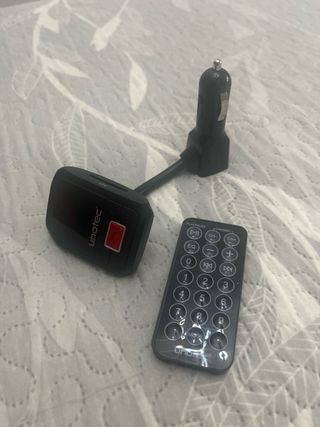 Transmisor FM Bluetooth para coche Unotec, usado y funcionando perfectamente. Ideal para coches que no tienen Bluetooth de serie. 🔹 Conexión Bluetooth para música y llamadas 🔹 Función manos libres 🔹 Se conecta al mechero del coche 🔹 Incluye mando a distancia 🔹 Fácil instalación y uso ⚠️ No tiene caja original. Se vende por no usar.