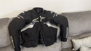Chaqueta de moto Alpinestars en color negro. Diseño deportivo con detalles reflectantes. - Logo Alpinestars en blanco en el pecho. - Inscripción Alpinestars en la manga. - Detalles reflectantes en gris en mangas y frontal. - Cierre de cremallera frontal.