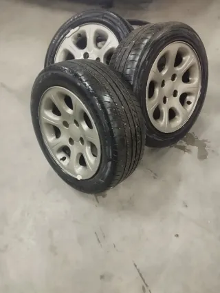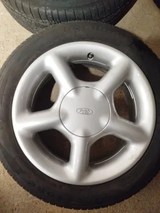 Juego de 4 llantas en 15" de ford escort en un estado casi impoluto, con neumaticos firestone 195/50/15 a un 95% de vida util. Los neumaticos se montaron en 2022 y no ha rodado casi nada.