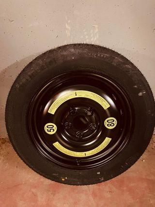Rueda de repuesto de la marca Continental. - Llanta de acero. - Neumático T125/80 D17. - Velocidad máxima 80 km/h. - Carga máxima 50 kg.